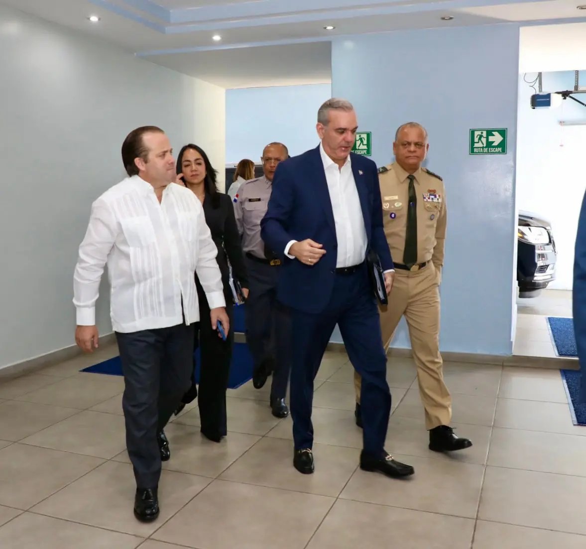 Junto al presidente están los ministros: José Ignacio Paliza (Presidencia), Faride Raful (Interior y Policía), Carlos Antonio Fernández Onofre (Defensa), la procuradora Yeni Berenice Reynoso, el director de la Policía Nacional, Ramón Antonio Guzmán Peralta, y Roger G. Pujols (Proyectos Especiales y Coordinación de Seguridad).
