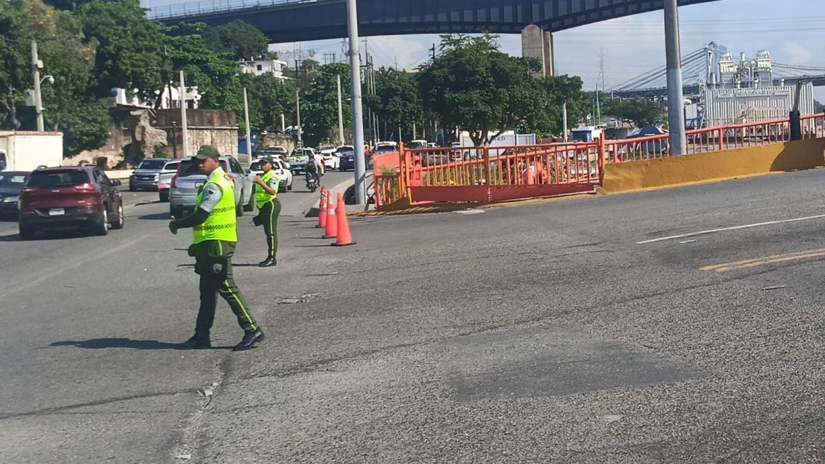 Agentes de tránsito se encuentran en el lugar gestionando el flujo vehicular y orientando a los conductores para agilizar la circulación.
