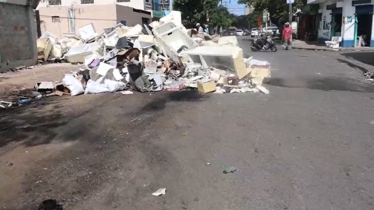 De acuerdo con el reporte del fotógrafo Guillermo Burgos, el pavimento está repleto de restos de electrodomésticos, principalmente neveras y lavadoras desmanteladas que obstruyen el libre paso.