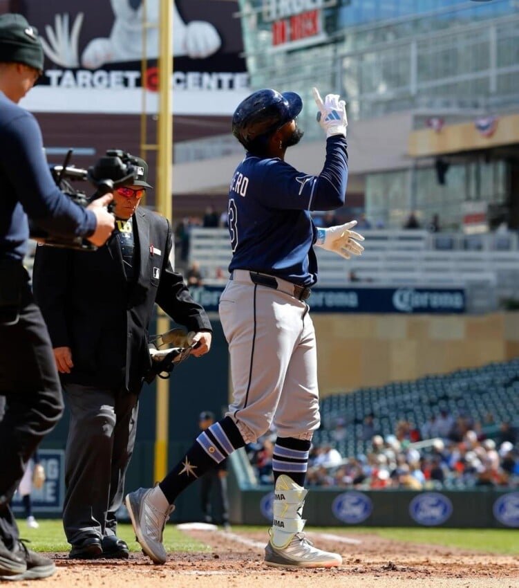 Junior Caminero no perdió tiempo y castigó la bola con su primer cuadrangular de la temporada confirmando que su poder dominicano sigue intacto.