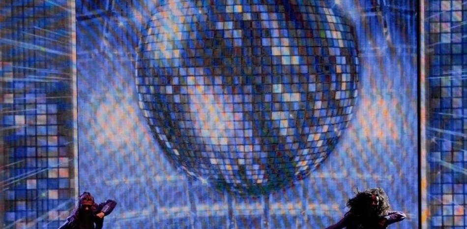 Chayanne junto a sus bailarines la noche del sábado 11 de abril en el Estadio Quisqueya de Santo Domingo, donde se presentó como parte de su gira “Bailemos otra vez tour 2026”.